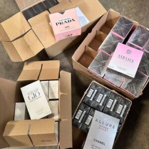 Each mixed perfume pallet may include a selection of popular designer and luxury fragrance brands, including but not limited to: